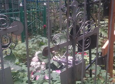 Обустройство с нуля могилы с очень высокой оградой. Земля на этом кладбище очень хорошая для различной растительности и в любое теплое время года здесь всегда растут сорняки, поэтому открытая земля на подобных кладбищах – это причина огородных работ на могиле, когда бы вы не пришли. Исходное состояние могилы далее.
