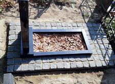 После того, как памятник был отодвинут, начинаем выравнивать его площадку. Досыпаем землю.