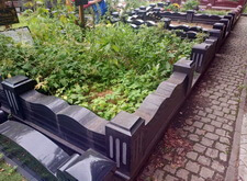 Далее мы установили мраморный крест, который отдельно приобретал сам клиент, а также вернули на место гранитное ограждение, предварительно его подрезав.